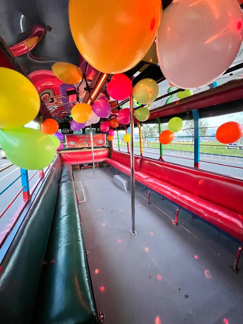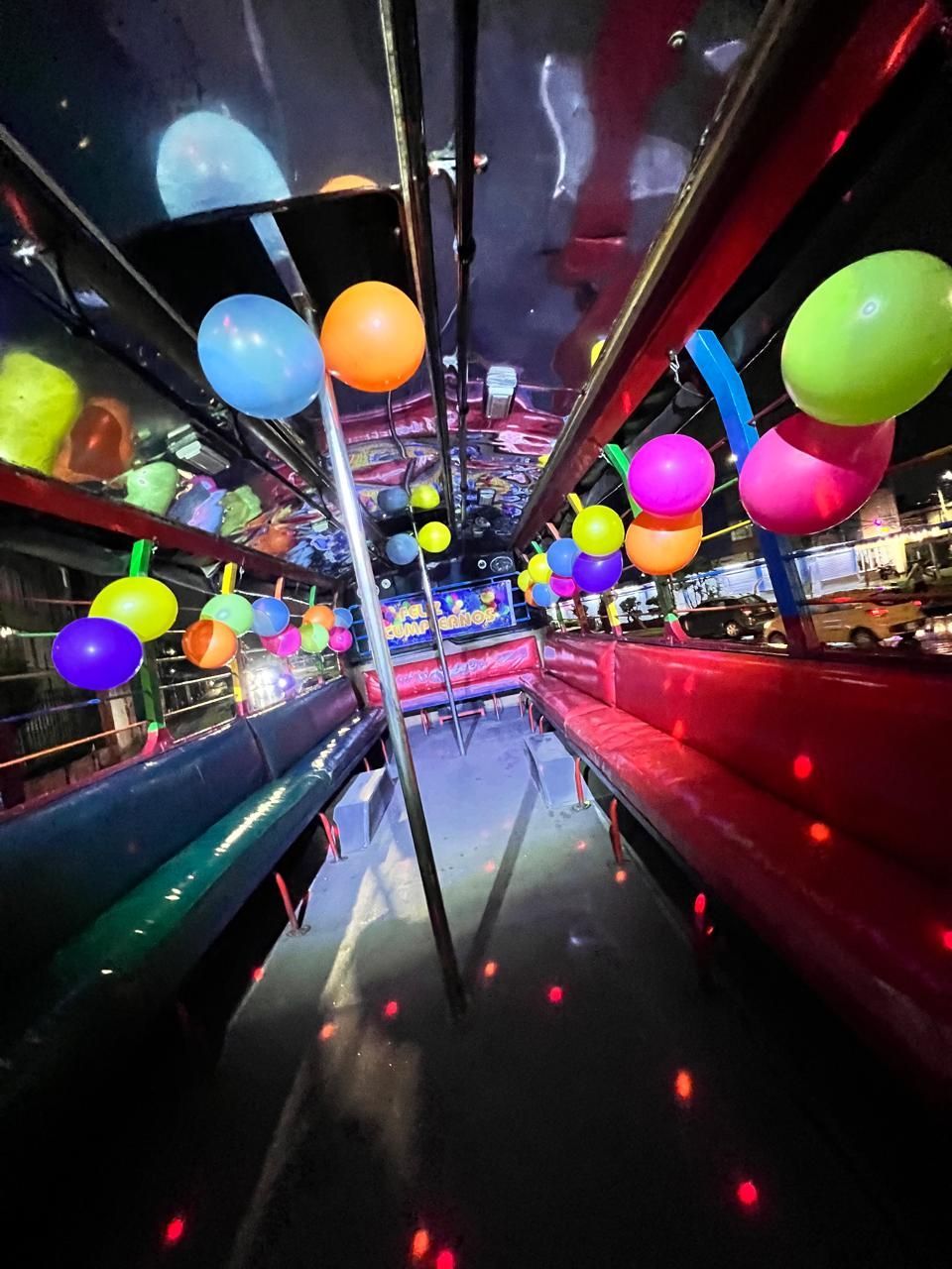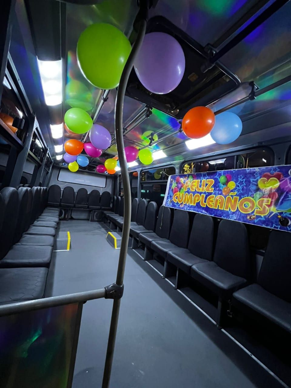 Nuestros vehiculos, cuentan con una amplia pista de baile, altura de 2 mts, luces, reproducción de tu propia playlist (Spotify) , por bluetooth o cable auxiliar y un coordinador de evento que hace que tu experiencia sea inolvidable durante el recorrido.